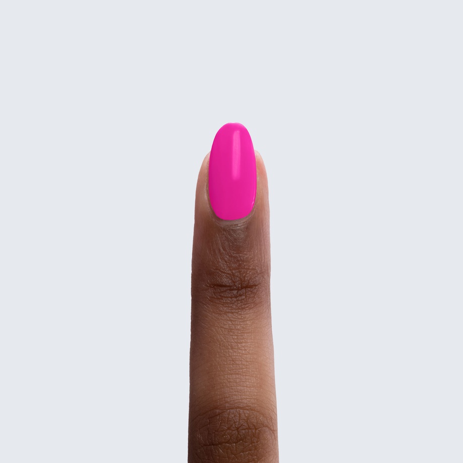 Neon fuchsia. Bright. Pearl finish. Warm undertone. Medium opacity.