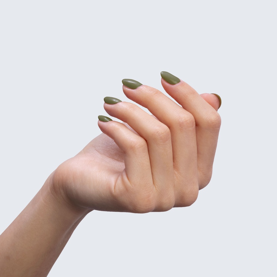Take a walk in the woods with an olive-green manicure to match.